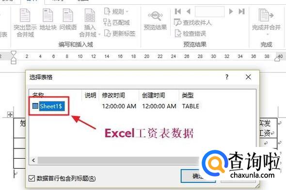 然后我们还需要在Word里通过插入表格的形式建立一张基本的工资表,不需要像Excel那样完善,我们只需建立4行、10列的表格即可(列数根据自己的Excel数据源而定)