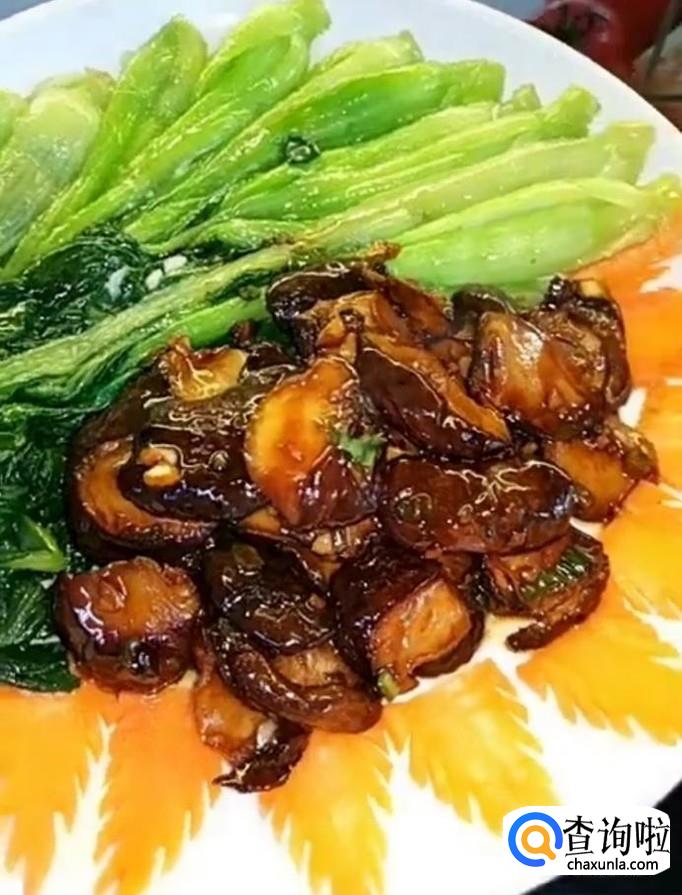 最后出锅装盘,美味的香菇油菜就制作完成啦!