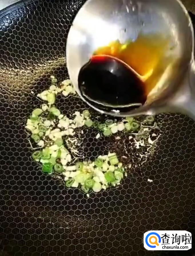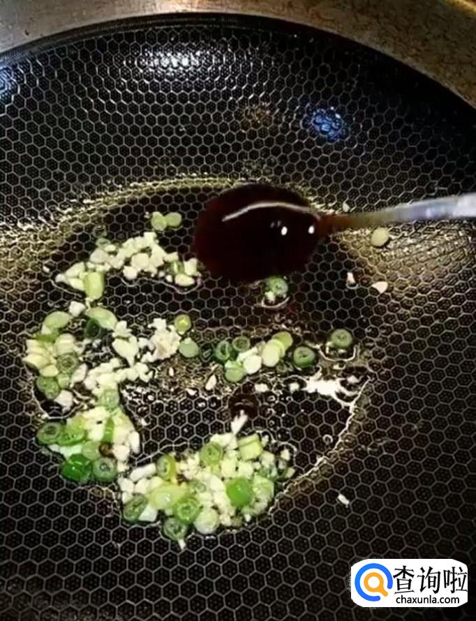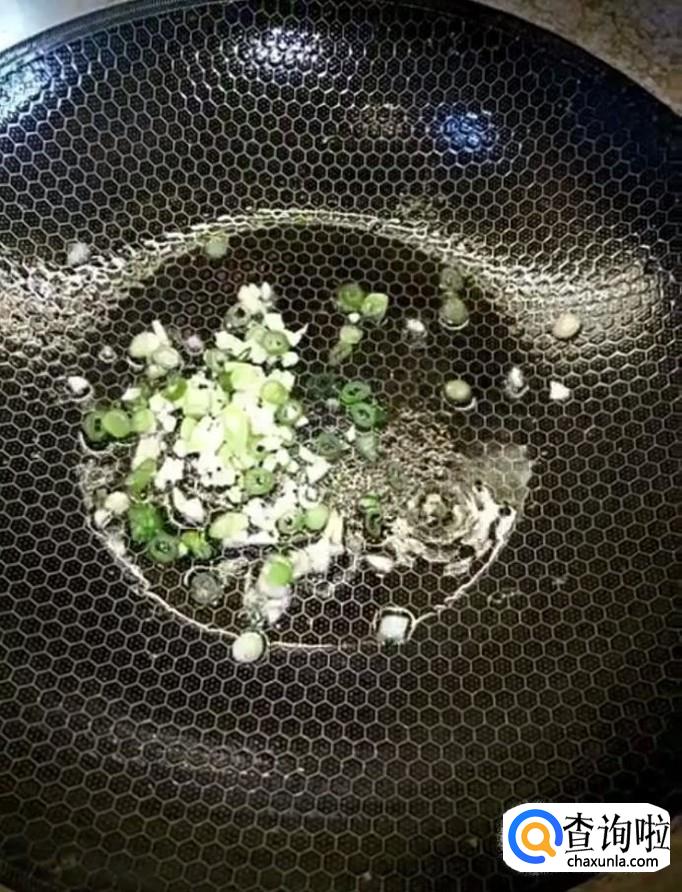 锅中留少许底油,放入葱末,蒜末爆香一下