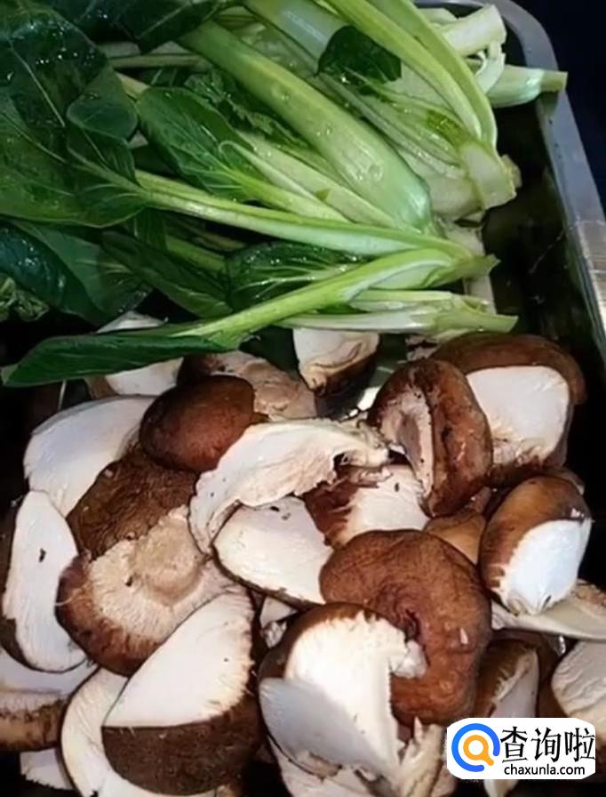 首先把香菇去根,清洗干净切成小块,油菜从中间切一刀清洗干净备用