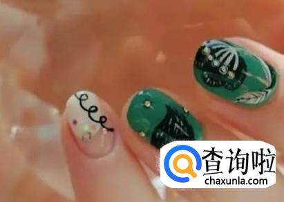 一提到春天,首先映入脑海的肯定就是那一抹绿色,所以建议大家可以尝试一下此款草木绿色的美甲,其独特的色调再加上植物造型,不仅可以显白,还能够给人一种清新与盈动的感觉。