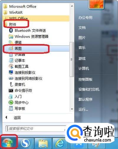 首先,我们点击开始菜单,如图所示,点击“所有程序”后,就能看到“附件”,点击打开“画图”。