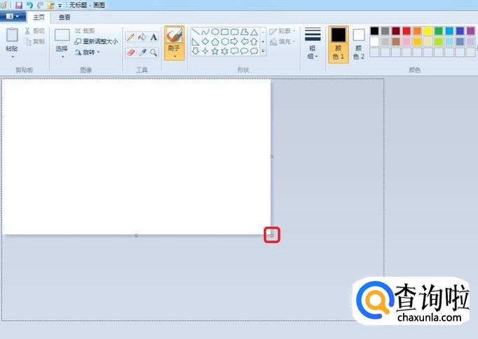 打开画图后,可能画图的界面会有点小,如图所示,我们把鼠标移至图中标记位置,把画图板界面拉大。