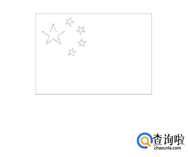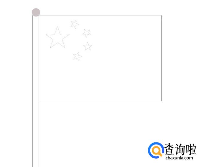 然后,在旗帜的左上角画上五颗星星。四个小的围着一个大的。