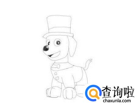 再画出路马的身体,然后再画出路马的两条后腿,并在身体上再画出路马的尾巴,这样旺旺队小狗路马就画好了,如图所示: