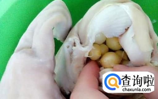 把姜片、红枣、枸杞、苦藠填到猪肚里,加适量的盐、2勺白酒。