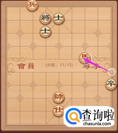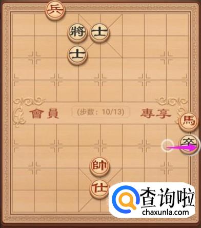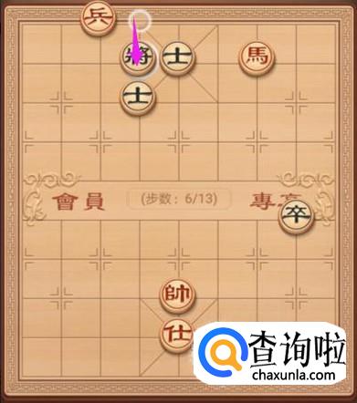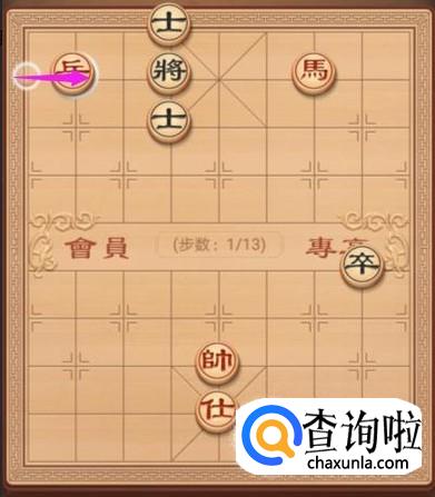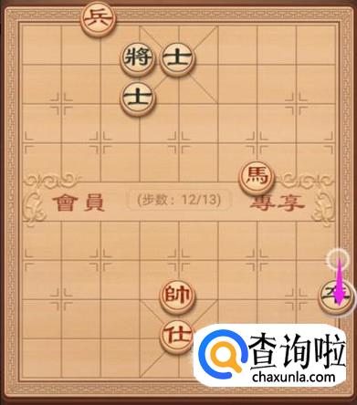 来到了这个残局篇之牧马悲鸣棋局,红方先走,第一步,兵右走一步,如图所示。