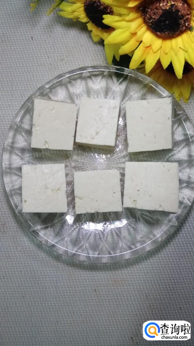 准备一块老豆腐,将老豆腐切成大方块,然后用模具在中间挖出一个五角星,形成一个小洞。