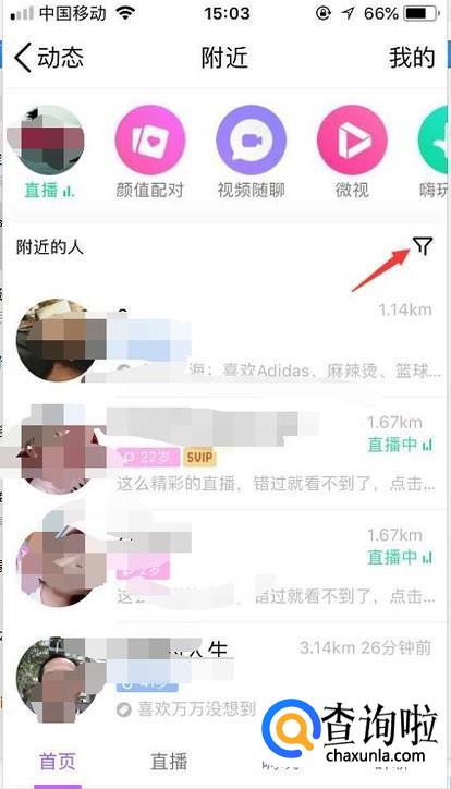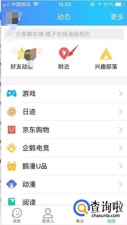 接着往下拉一下然后点击右边的图标进入附近人其他的功能。