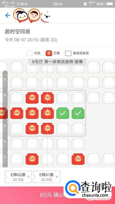 接着,将你想要购买的电影票的座位和在哪个电影院选择好。