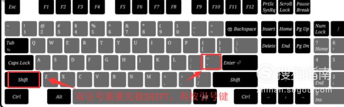 想要输入双引号,需要按住SHIFT键不松手,再按下引号按键。