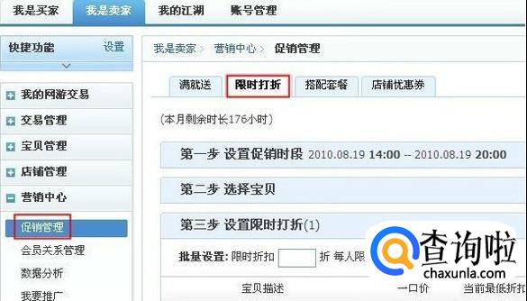 设置限时打折活动内容。