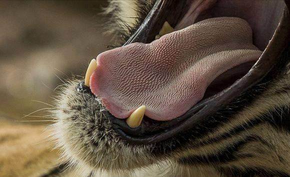 有的人没见过这倒刺,我们先看看老虎的舌头,猫科动物的舌头上也有倒刺。