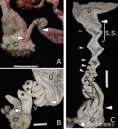 当然了,既然鸭子的丁丁长,那么对应的鸭子的阴道也是很让人吃惊,雌性鸭子同样拥有很奇怪的输卵管,然后形成扭曲的螺旋形结构。