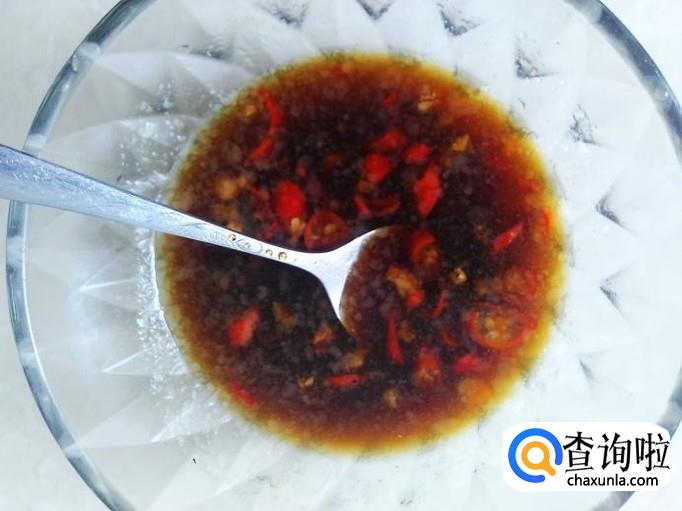 小米辣、蒜米、姜剁成碎丁,加2勺生抽,3勺水搅拌均匀。
