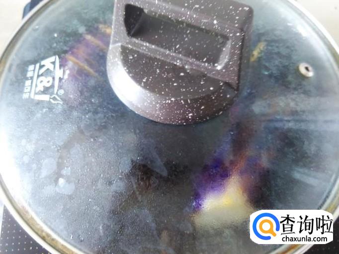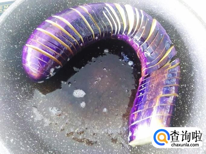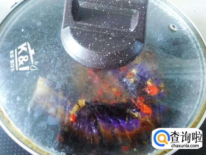 打开盖子,把茄子翻转,再盖上盖子炸焗3分钟左右。