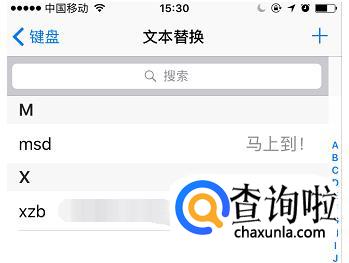 点击右上角的“+”就可以进入文本编辑页面了,这里的短语是指你要快速发送的文本,输入码指的是在编辑文字发送的时候输入的英文字母(对应短语),编辑好后保存即可;
