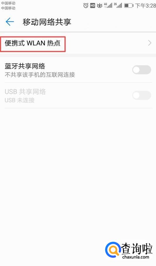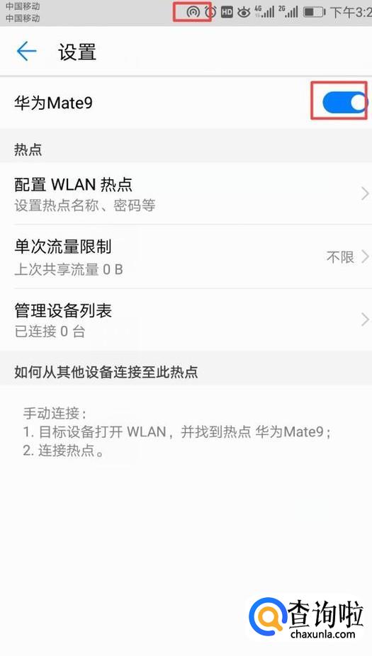 结果如图所示,这样就共享了移动网络了,我们可以看到上方有个开启热点的符号,说明我们已经开启了。