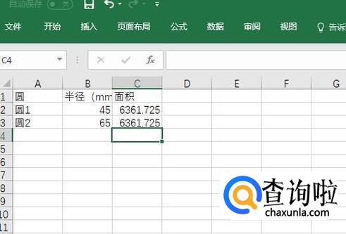 在C2和C3输入公式:=PI()*B2^2。这个就是在excel中计算圆面积的公式,直接输入即可。
