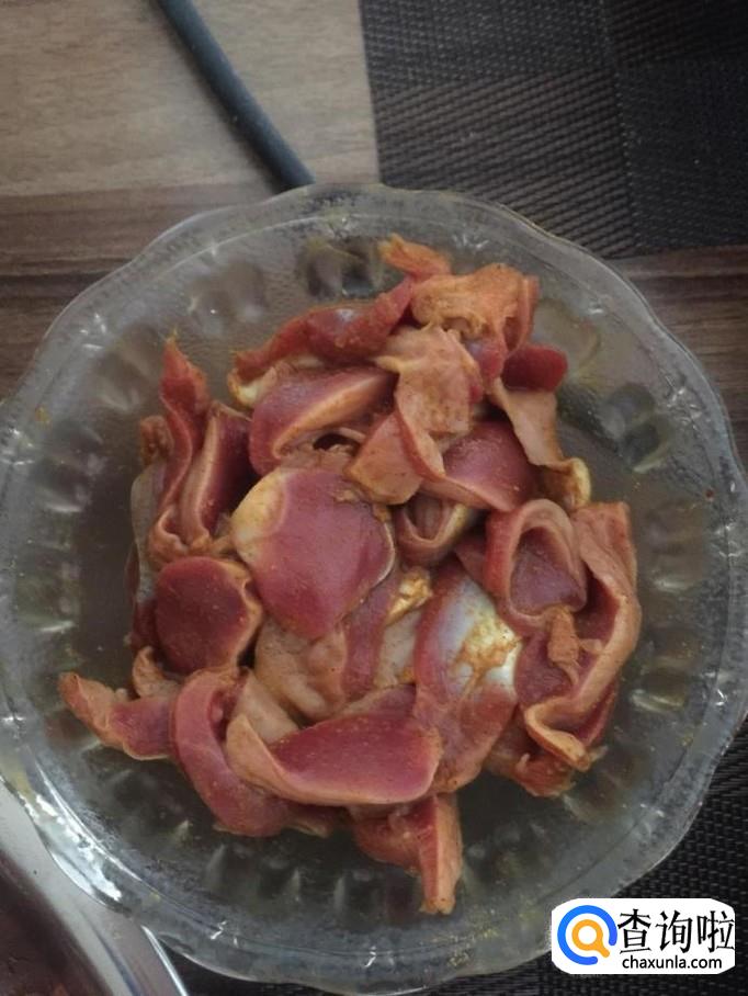 首先我们需要用清水把鸡胗清洗干净,然后用盐和淀粉、料酒把鸡胗提前腌制(为了更加入味我们可以把鸡胗切片腌制)。