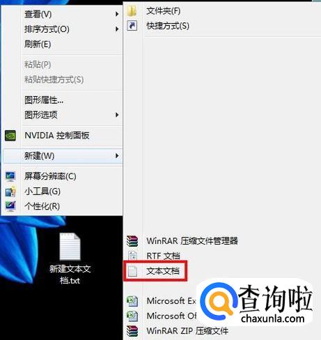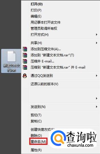 鼠标右键刚刚新建的文本,选择重命名,如果没有后缀名txt,请自行到“文件夹选项”中设置显示文件扩展名;