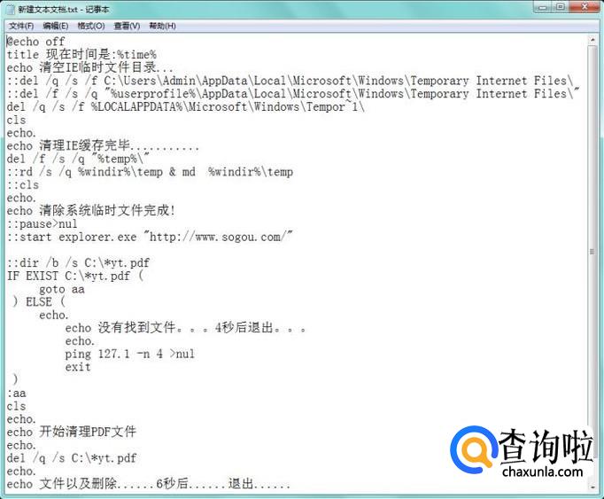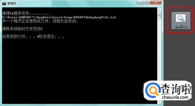 双击bat文件就可以执行代码了,由于这里演示用的电脑经常清理,清理过程很快;