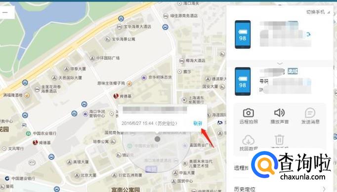 进入后,我们可以在地图位置处点击“刷新”,就可以定位出手机当前所在的位置。