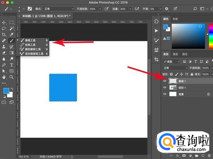 然后就可以进行着色了,ctrl+shift+n创建一个新图层,然后在工具栏中选择“画笔工具”