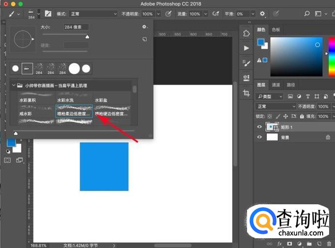 选择喷枪画笔之后,ctrl+shift+n创建一个新图层,点击新图层进行着色。
