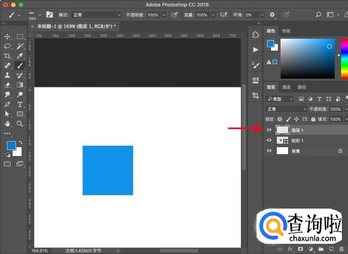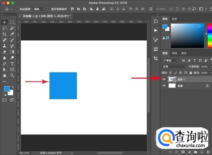 要想限定范围进行着色的话,就需要限定选区,在右侧图层栏中按ctrl+左键点击形状图层,点击后即可出现选区。