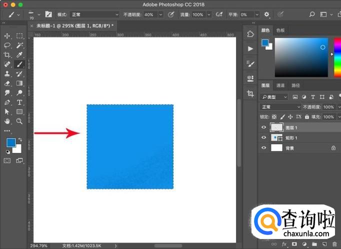 同样,按ctrl+左键点击形状图层出现选区,然后点选图层1进行喷绘,即可看到肌理质感了,通过调整不透明度能够有不同的效果。