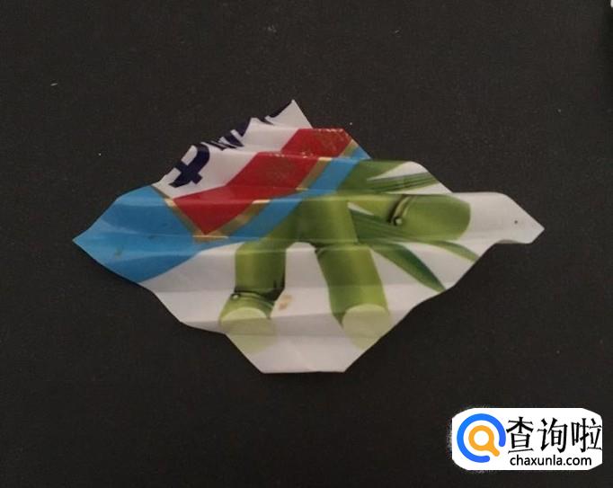 接着,用相同的方法,再折叠一张糖纸。折好后,可以用夹子夹住,或者其他东西压好。