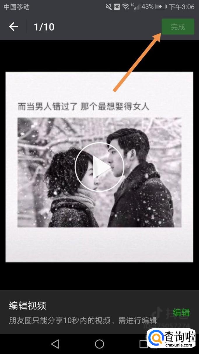选择好了过后,编辑这个视频到10秒,因为朋友圈只能最多发10秒,编辑完了过后,就直接上传就可以了。