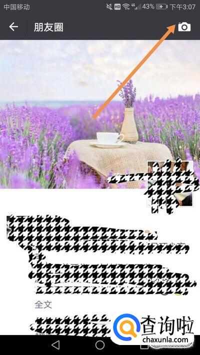 点击去上传,就自动跳到微信界面,然后打开朋友圈,点击右上角的相机,如下图。