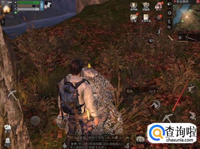 之后找到石头,接着点击游戏页面中的矿镐图标。