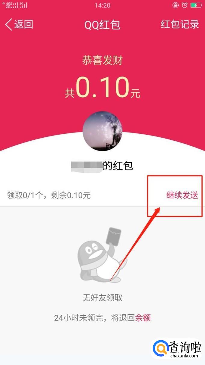 点击进入已经发送的红包界面,继续发送该红包给刚才联系的好友;