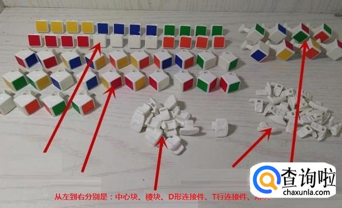 四阶魔方一般由中心块、棱块、角块、T形连接件、D形连接件,外加中心轴五个部分组成。
