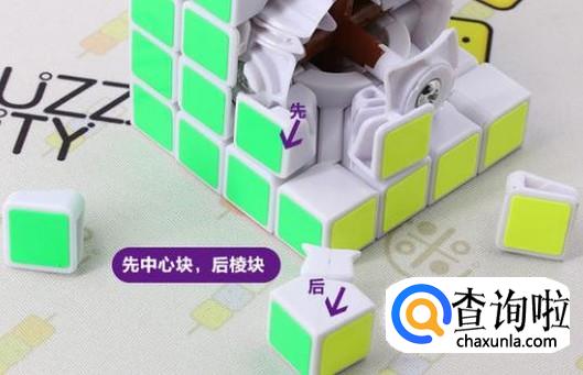 开始安装中心块,注意方向和颜色。白色的放里面,颜色要每一面都一个颜色。