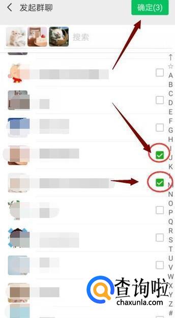 我们在”发起群聊“界面勾选一些微信好友,点击确定,如图所示。