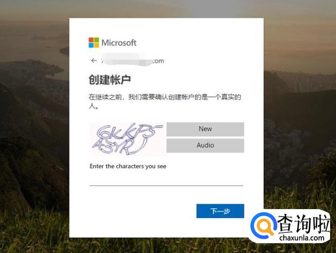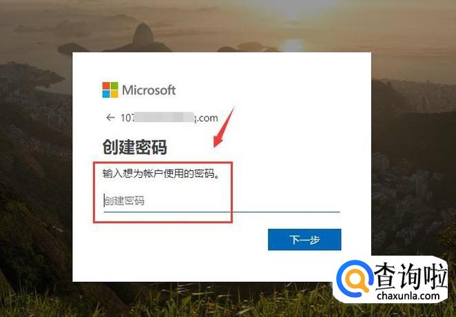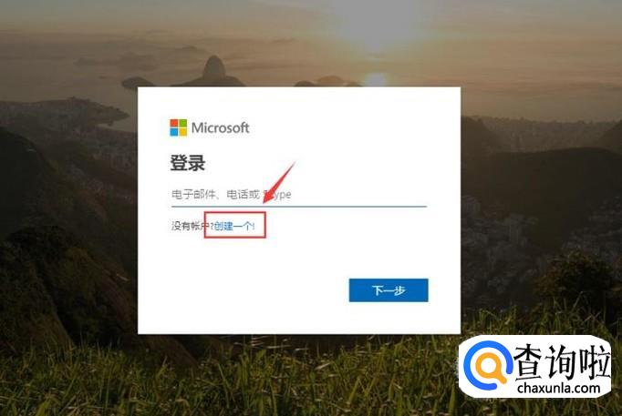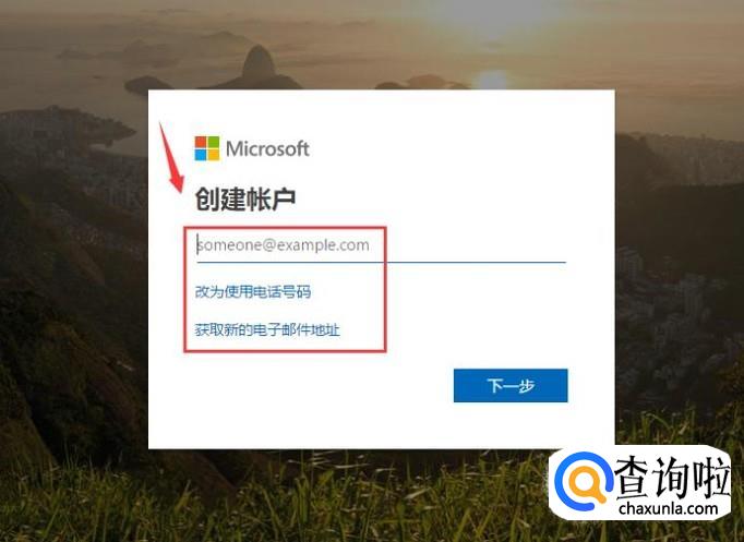 选择创建账户的方式,如使用手机号码或者邮箱,如果没有邮箱的话可以注册一个微软的邮箱,点击下一步。