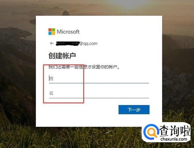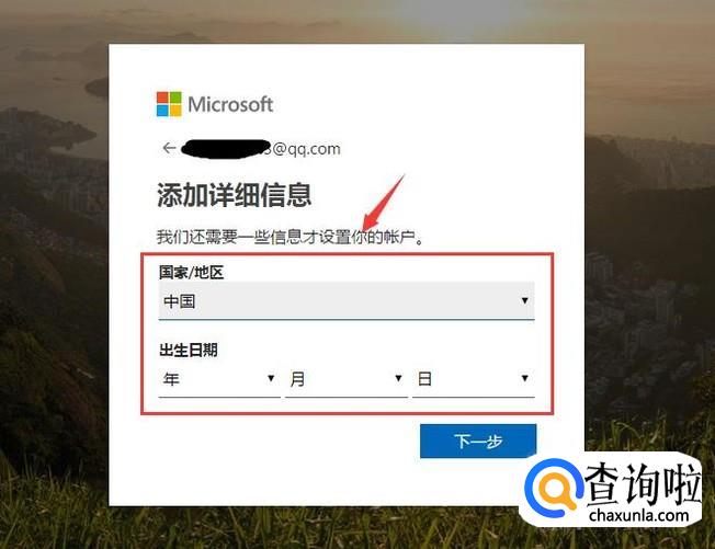 然后跟着提醒输入个人的信息,如姓名、地区、出生日期,输入完成后点击下一步。