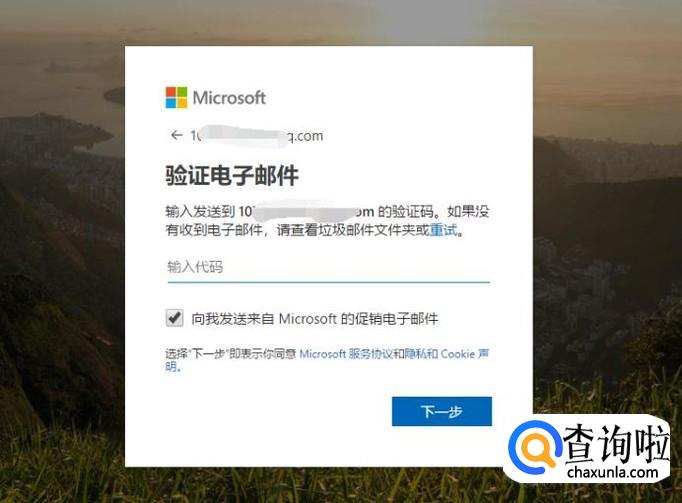 接着手机或者邮箱就会受到官方发来的验证代码,在页面中输入代码,点击下一步。