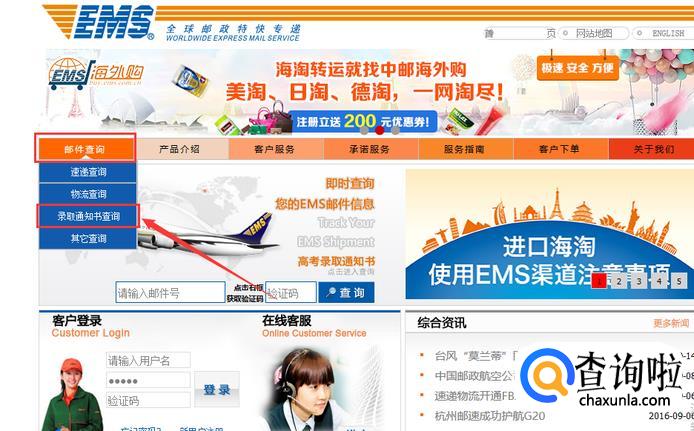 学校一般采用EMS来寄录取通知书,因此首先检索EMS官网。