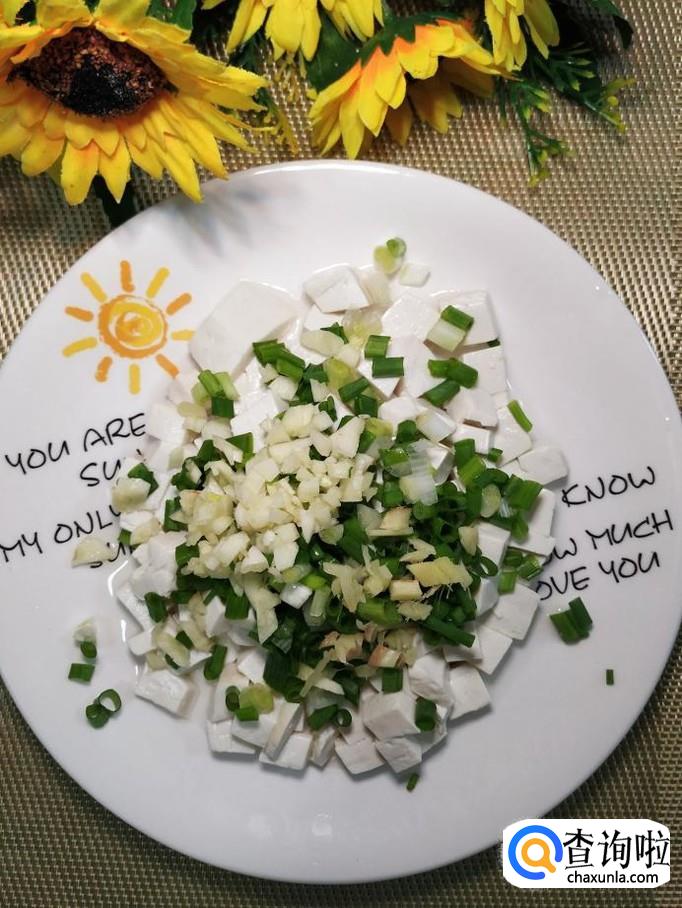 准备一块豆腐和适量小葱。这个菜属于凉拌菜,所以食材越新鲜越好,注意,我这里用的是嫩豆腐。