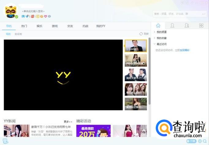用账户密码登录,手机和电脑的账号是通用的,输入后点击“登录”,并进入YY软件首页。