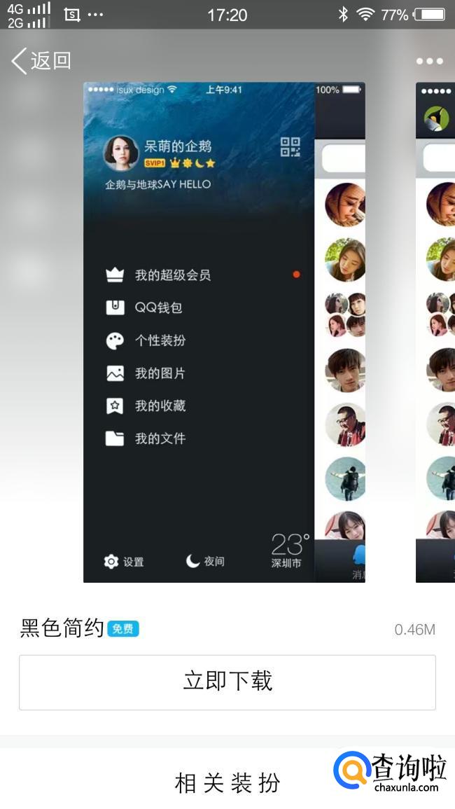 点击查看就可以选择下载,下载好之后就会自动切换成新下载的皮肤。