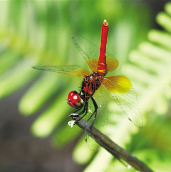 这种学名为Nannophya Pygmea的蜻蜓,身长只有10毫米,两翼横展时长10至13毫米,是全球目前所发现的体形最小的蜻蜓。