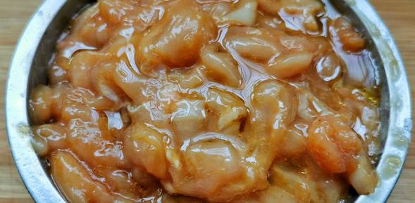 拌上淀粉就会很嫩,嚼劲也比较足。最好是先码味!待码味后再加入淀粉、加入少量的嫩肉粉;再加入少量的水搅拌后滑油或者下沸水焯制!