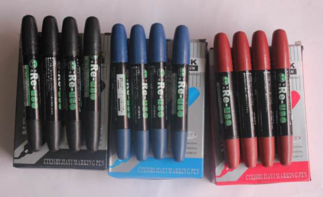 马克笔是一种书写或绘画专用的绘图彩色笔,本身含有墨水,且通常附有笔盖,一般拥有坚软笔头。马克笔的颜料具有易挥发性,用于一次性的快速绘图。马克笔分为水性和油性的墨水,水性的墨水就类似彩色笔,是不含油精成份的内容物,油性的墨水因为含有油精成份,故味道比较刺激,而且较容易挥发。如果玩具掉漆可以用马克笔补色。