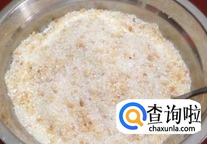 根据喜好将花生放在锅中干炒片刻,之后将花生皮去掉,然后打成粉末状,之后依次加入黑芝麻和白糖,并且搅拌均匀,用来当做油角的馅料。